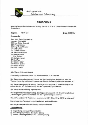 Gemeinderatsprotokoll 15.10.2018