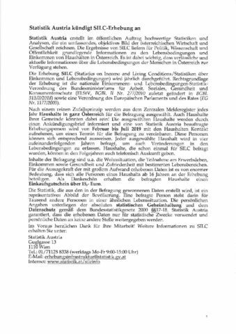 Statistik Austria kündigt SILC-Erhebung an