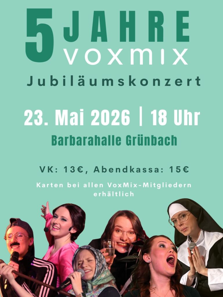 Eintrittskarten: VVK 13,00 / AK 15,00 bei allen VoxMix-Mitgliedern
