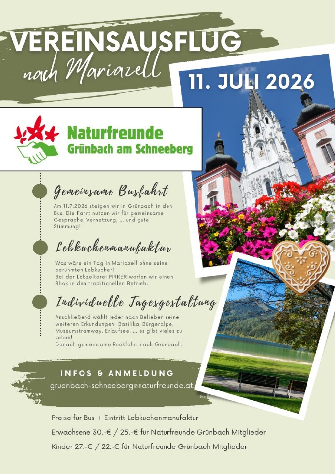 Herzliche Einladung an alle INTERESSIERTE: Sei dabei bei unserem diesjährigen Vereinsausflug nach Mariazell!